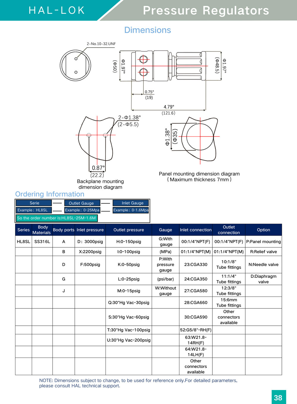Outlet pressure:0〜25psig,0〜50psig,0〜100psig,0〜250psig,0〜500psig